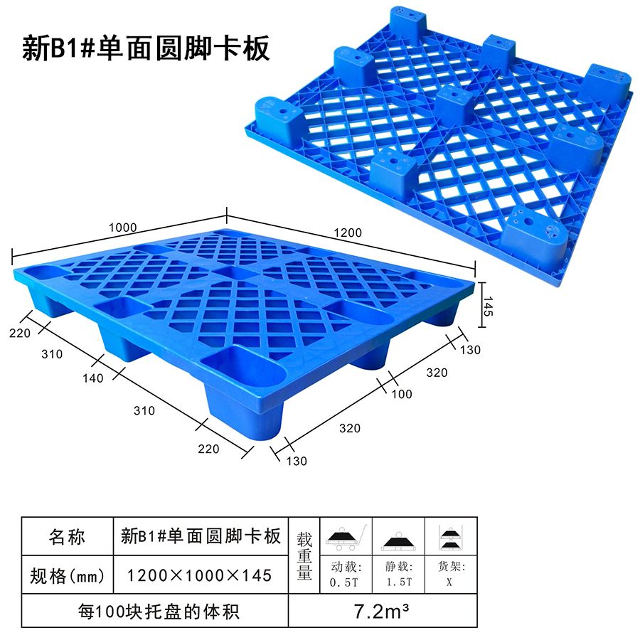 | 可选颜色 | 低兰,兰,黄,黑,绿,红,白,灰,其他 | 动载 | 0.5T | 材料 | PP,PE | 型式 | 四面进叉 | 适用范围 | 食品医药化工纺织汽配厂等行业仓储物流运输用 | 尺寸 | 1200×1000×145 | 静载 | 1.5T | 类型 | 单面 | 百个数量体积 | 7.2m³ | 货架 | X |