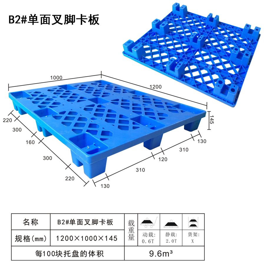 | 可选颜色 | 低兰,兰,黄,黑,绿,红,白,灰,其他 | 动载 | 0.6T | 材料 | PP,PE | 型式 | 四面进叉 | 适用范围 | 食品医药化工纺织汽配厂等行业仓储物流运输用 | 尺寸 | 1200×1000×145 | 静载 | 2T | 类型 | 单面 | 百个数量体积 | 9.6m³ | 货架 | X |
