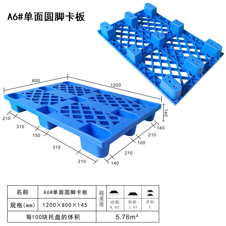 | 可选颜色 | 低兰,兰,黄,黑,绿,红,白,灰,其他 | 动载 | 0.6T | 材料 | PP,PE | 型式 | 四面进叉 | 适用范围 | 食品医药化工纺织汽配厂等行业仓储物流运输用 | 尺寸 | 1200×800×145 | 静载 | 2T | 类型 | 单面 | 百个数量体积 | 5.76m³ | 货架 | X |
