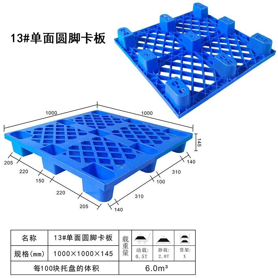 | Color | Low blue,blue,yellow,black,green,red,white,grey,other | Dynamic load | 0.5T | Material | PP,PE | Model | Four-way | Scope | Food pharmaceutical and chemical industries such as textile parts factory warehouse logistics transportation | size | 1000×1000×145 | Static load | 2T | Type | Single side | 100 volume | 6m³ | Shelf | X |