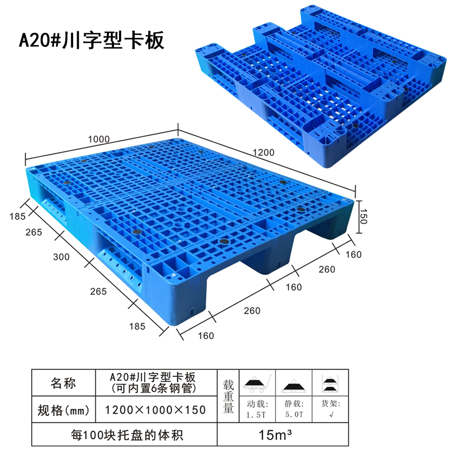 | 可选颜色 | 低兰,兰,黄,黑,绿,红,白,灰,其他 | 动载 | 1.5T | 材料 | PP,PE | 型式 | 四面进叉 | 适用范围 | 医药、造纸、印刷、电子电器、化工、服装、纺织、仓储物流 | 尺寸 | 1200×1000×145 | 静载 | 5T | 类型 | 川字 | 百个数量体积 | 15m³ | 货架 | √ |