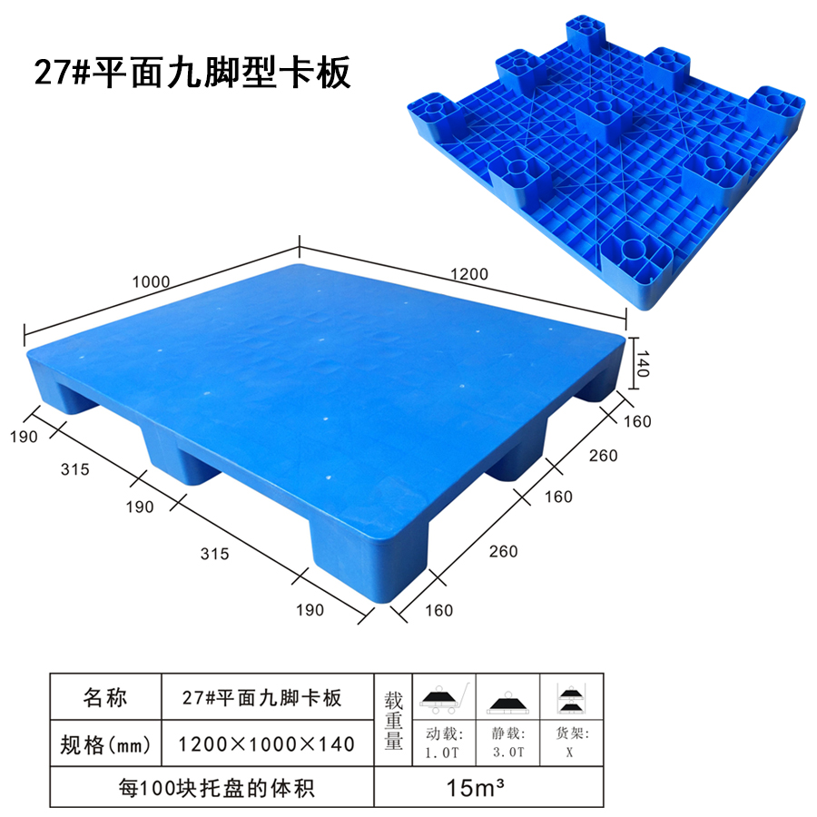 | 可选颜色 | 低兰,兰,黄,黑,绿,红,白,灰,其他 | 动载 | 1T | 材料 | PP,PE | 型式 | 四面进叉 | 适用范围 | 食品医药化工纺织汽配厂等行业仓储物流运输用 | 尺寸 | 1200×1000×140 | 静载 | 3T | 类型 | 单面 | 百个数量体积 | 15m³ | 货架 | X |