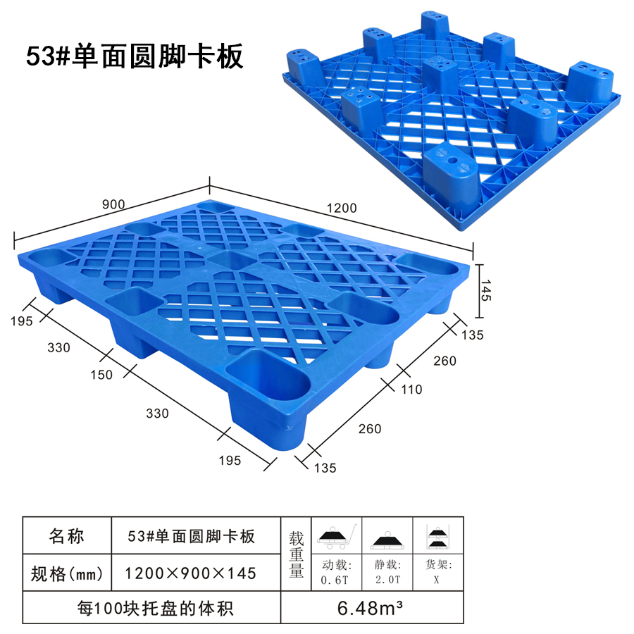 | 可选颜色 | 低兰,兰,黄,黑,绿,红,白,灰,其他 | 动载 | 0.6T | 材料 | PP,PE | 型式 | 四面进叉 | 适用范围 | 纺织厂、食品厂、医药厂等企业应用 | 尺寸 | 1200×900×145 | 静载 | 2T | 类型 | 单面 | 百个数量体积 | 6.5m³ | 货架 | X |