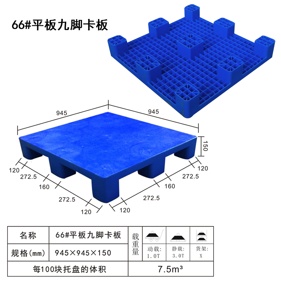 | 可选颜色 | 低兰,兰,黄,黑,绿,红,白,灰,其他 | 动载 | 1T | 材料 | PP,PE | 型式 | 四面进叉 | 适用范围 | 食品医药化工纺织汽配厂等行业仓储物流运输用 | 尺寸 | 945×945×150 | 静载 | 3T | 类型 | 单面 | 百个数量体积 | 7.5m³ | 货架 | X |