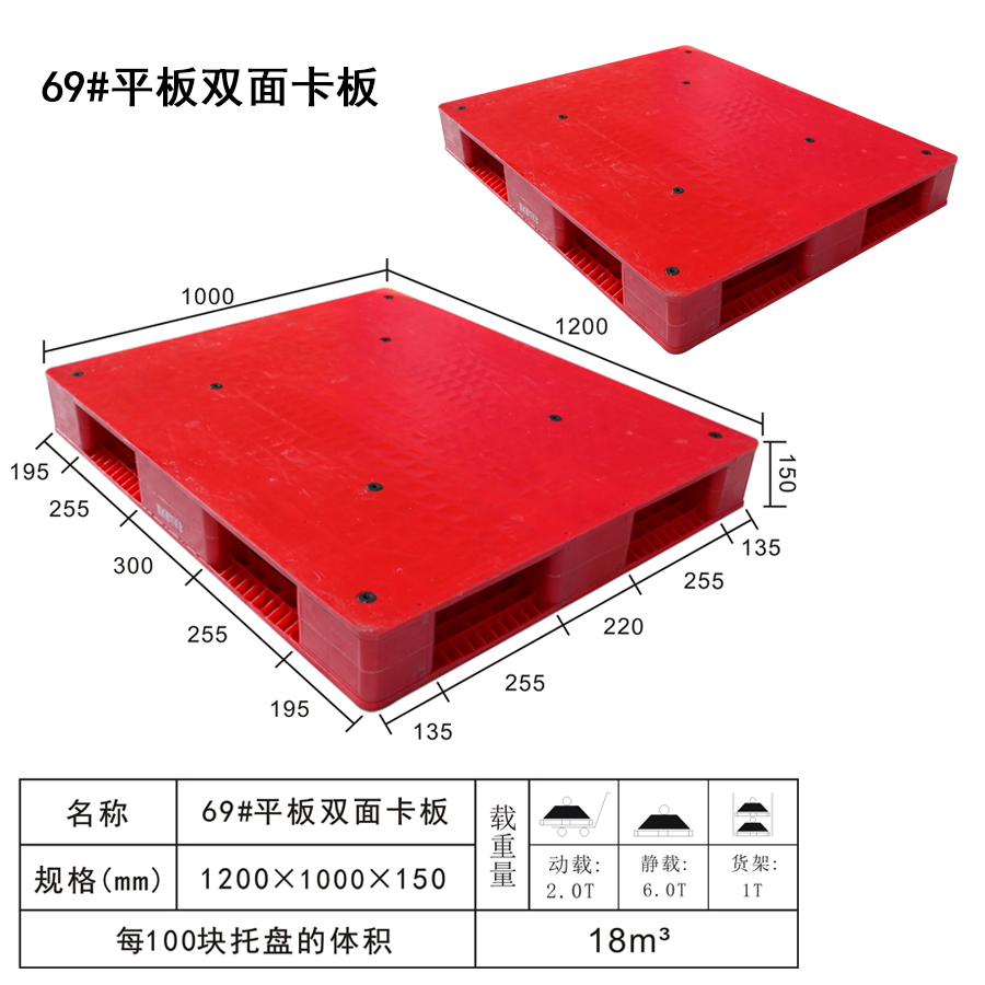 | Color | Low blue,blue,yellow,black,green,red,white,grey,other | Dynamic load | 2T | Material | PP,PE | Model | Four-way | Scope | Textile factory, food factory, pharmaceutical factory and other enterprise applications | size | 1200×1000×150 | Static load | 6T | Type | Double sided | 100 volume | 18m³ | Shelf | √ |