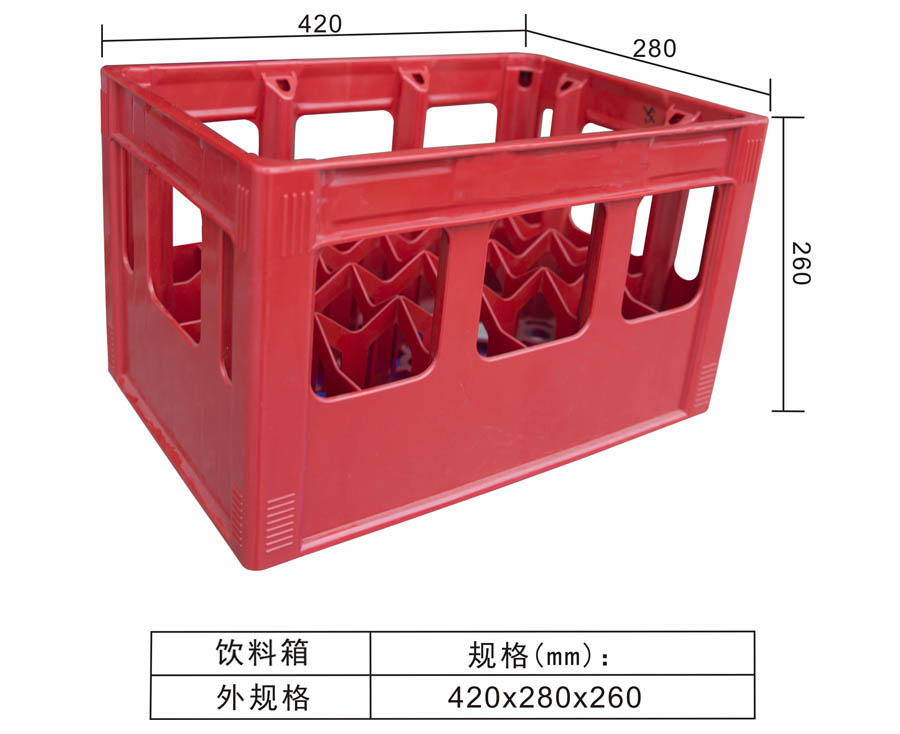 | Color | Low blue,blue,yellow,black,green,red,white,grey,other | Dynamic load | -- | Material | PP,PE | Model | -- | Scope | Beverage special box | size | 420×280×260 | Static load | -- | Type | Turnover box | 100 volume | 3m³ | Shelf | -- |
