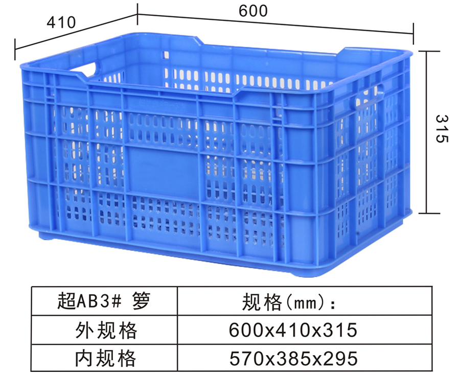 | Color | Low blue,blue,yellow,black,green,red,white,grey,other | Dynamic load | -- | Material | PP,PE | Model | -- | Scope | Fruits, vegetables, machinery parts, refrigeration, storage, transportation and other industries | size | 600×410×315 | Static load | -- | Type | Turnover basket | 100 volume | 7.8m³ | Shelf | -- |