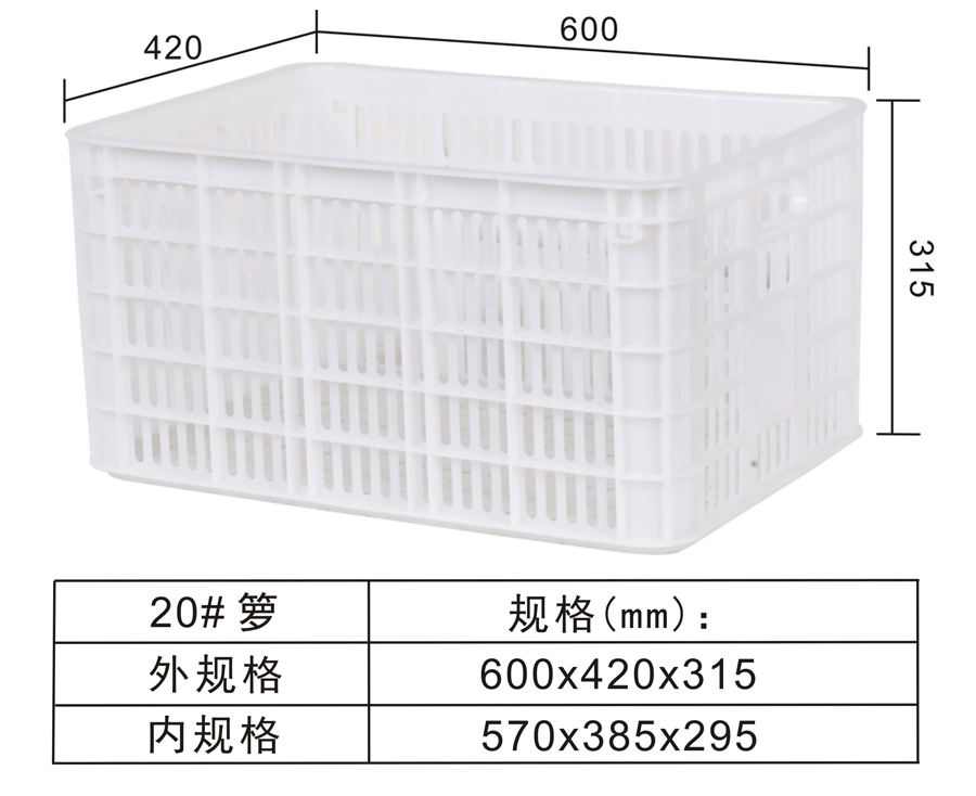 | Color | Low blue,blue,yellow,black,green,red,white,grey,other | Dynamic load | -- | Material | PP,PE | Model | -- | Scope | Fruits, vegetables, machinery parts, refrigeration, storage, transportation and other industries | size | 600×420×315 | Static load | -- | Type | Turnover basket | 100 volume | 8m³ | Shelf | -- |