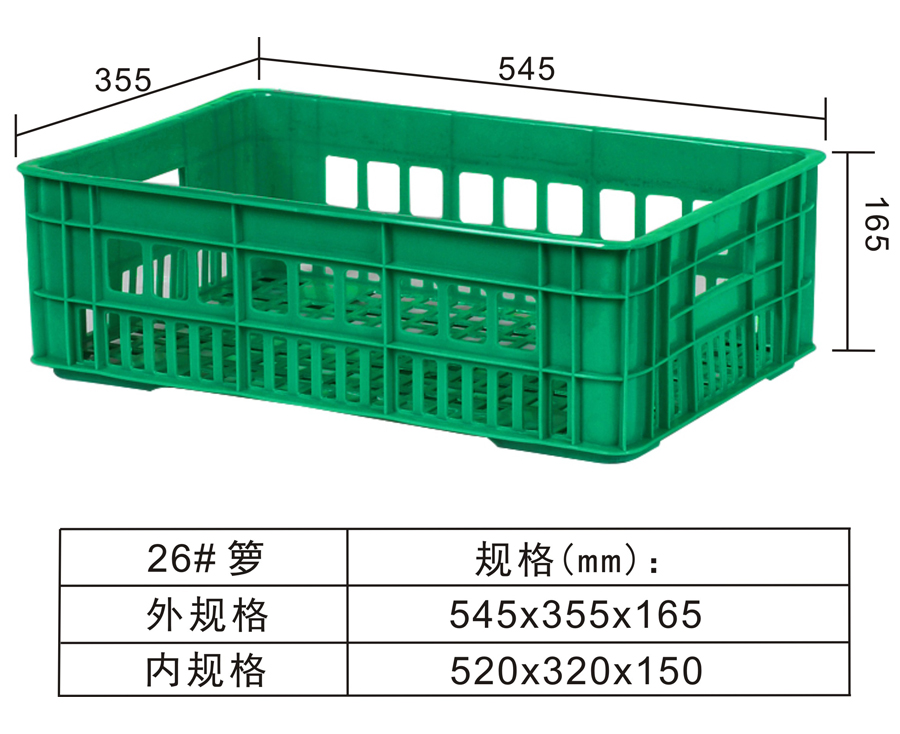 | 可选颜色 | 低兰,兰,黄,黑,绿,红,白,灰,其他 | 动载 | -- | 材料 | PP,PE | 型式 | -- | 适用范围 | 水果、蔬菜、机械零配件、冷藏、储存、运输等行业 | 尺寸 | 545×355×165 | 静载 | -- | 类型 | 周转箩 | 百个数量体积 | 3m³ | 货架 | -- |