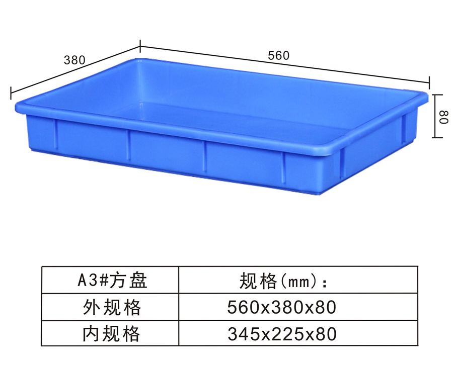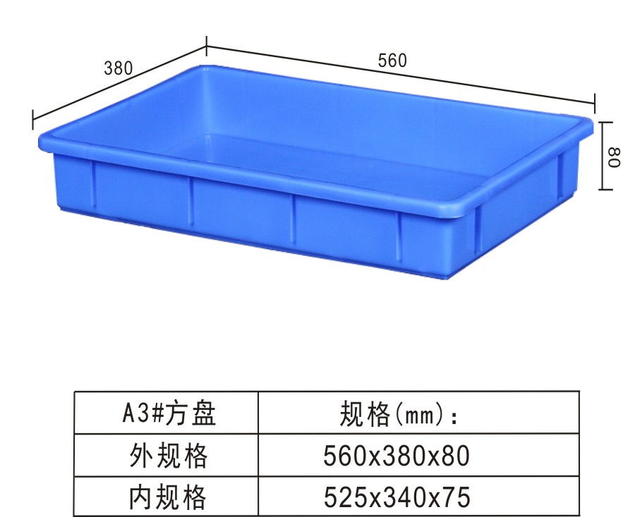 | Color | Low blue,blue,yellow,black,green,red,white,grey,other | Dynamic load | -- | Material | PP,PE | Model | -- | Scope | For food, machinery, automobile, home appliances, light industry, electronics, hardware and other in | size | 560×380×80 | Static load | -- | Type | Square plate | 100 volume | 1.8m³ | Shelf | -- |