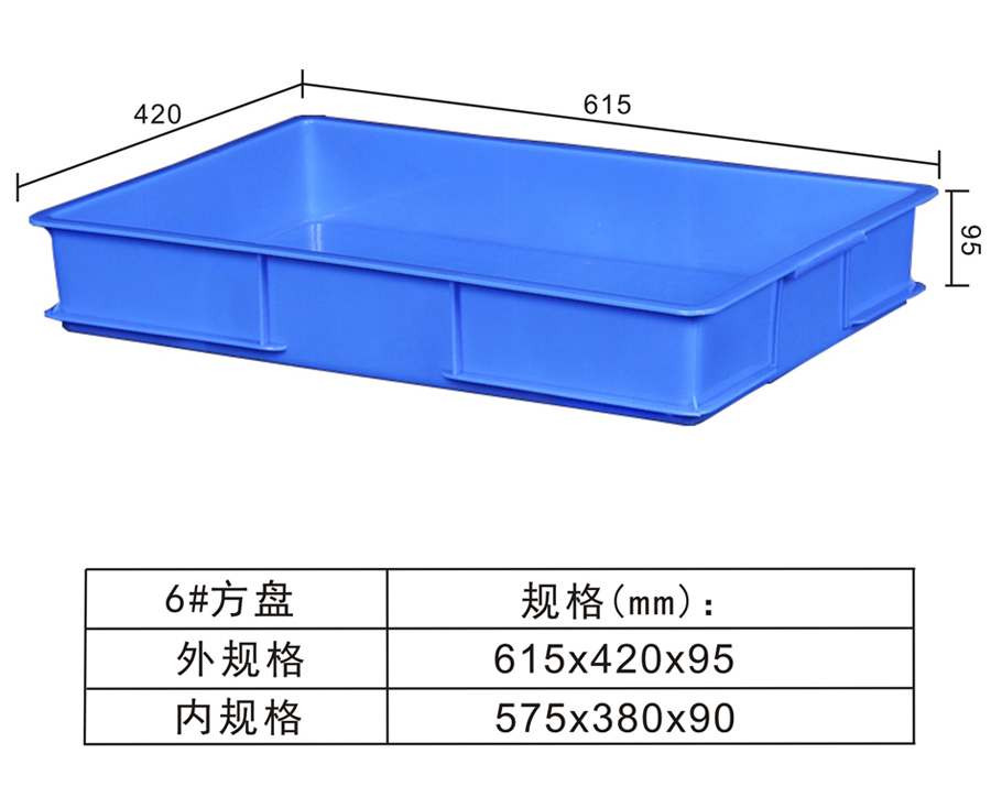 | Color | Low blue,blue,yellow,black,green,red,white,grey | Dynamic load | -- | Material | PP,PE | Model | -- | Scope | For food, machinery, automobile, home appliances, light industry, electronics, hardware and other in | size | 615×420×95 | Static load | -- | Type | Square plate | 100 volume | 2.5m³ | Shelf | -- |