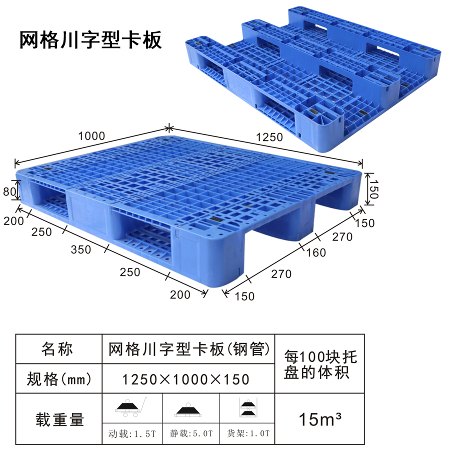| 可选颜色 | 低兰,兰,黄,黑,绿,红,白,灰,其他 | 动载 | 1T | 材料 | PP,PE | 型式 | 四面进叉 | 适用范围 | 烟草专用托盘 | 尺寸 | 1250×1000×150 | 静载 | 4T | 类型 | 川字 | 百个数量体积 | 15m³ | 货架 | -- |
