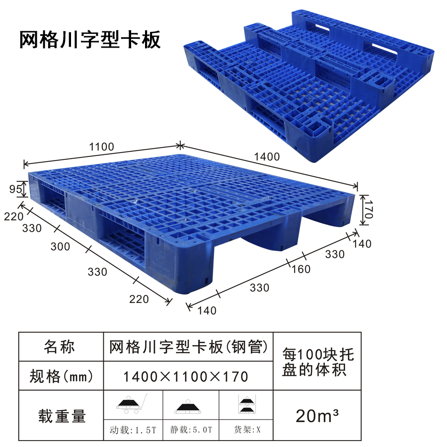 | 可选颜色 | 低兰,兰,黄,黑,绿,红,白,灰,其他 | 动载 | 1.5T | 材料 | PP,PE | 型式 | 四面进叉 | 适用范围 | 烟草专用卡板 | 尺寸 | 1400×1100×170 | 静载 | 5T | 类型 | 川字 | 百个数量体积 | 0m³ | 货架 | -- |